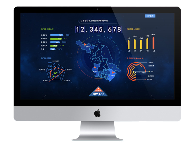 实现触点营销的全流程监控和分析,利用数据中心提供的IT精确营销池、地市平台、经分数据等,通过平台实现触点营销的全流程监控和分析,为营销中心实现触点营销的智能营销和推荐服务,实现渠道目标客户精确推荐的智能分析、数据可视化展示、营销活动和业务的实时数据监控。